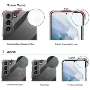 Capinha Capa Case Samsung Galaxy S22 Ultra proteção contra quedas, impactos e arranhões Quinas reforçadas Bordas laterais mais elevadas para proteção da câmera e da tela frontal Se adapta com Perfeição aos botões laterais e as curvas do aparelho Pode manter a capa no aparelho o tempo todo, mesmo durante a recarga Design extremamente Moderno Fina e Leve (Não interfere no peso do aparelho) Compacta (Tamanho exato do aparelho) Pode ser lavada Preserva a estética e durabilidade do aparelho Fácil Instalação e Remoção Compatível com Aparelho: Samsung Galaxy S22 5G 100% Novo e Lacrado Material: Tpu (Resistente e Flexível) Cor: Transparente Peso: 20 gramas