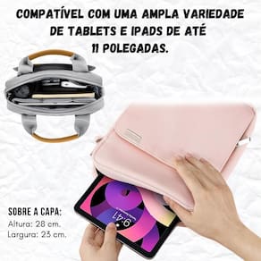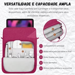 Compartimento principal espaçoso, bolso frontal com zíper, bolso de malha, bolso reforçado para tablet, alça regulável, resistente à água, zíper robusto.Características