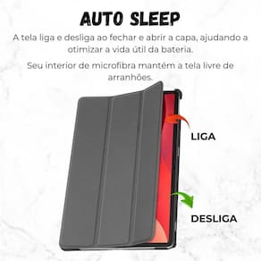 o recurso auto sleep, acionado pelo sensor magnético integrado, não só economiza energia como prolonga a vida útil da bateria do seu tablet. Feche a capa para ativar o modo de suspensão e abra para ter seu dispositivo pronto para uso instantaneamente.