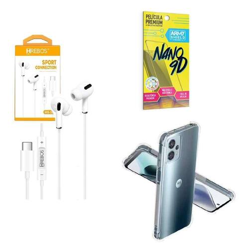 Kit Capinha Moto G13 AntiShock Transparente + Fone de Ouvido Tipo C Intra Auricular - ES-105 + Película de Cerâmica 9D Frontal Novo Fone de Ouvido com entrada Tipo C. Compatível com dispositivos modernos que possuem essa porta, você pode desfrutar de uma experiência de áudio imersiva e de alta qualidade. Com seu design ergonômico e confortável, é perfeito para uso prolongado. Além disso, oferece controles de reprodução integrados e um microfone embutido para facilitar o atendimento de chamadas. Leve e portátil, é ideal para uso diário, seja no trabalho, em viagens ou durante seus exercícios. Desfrute de um som excepcional e uma experiência auditiva perfeita com o Fone de Ouvido entrada Tipo C. Capinha Transparente em TPU de Alta Resistência é projetada para absorver impactos e proteger o seu celular contra quedas, arranhões e outros danos. Especialmente projetada para se encaixar perfeitamente no seu celular, proporcionando uma cobertura completa e proteção para todas as partes do dispositivo. Ela é transparente, permitindo que você exiba a beleza do seu celular sem comprometer a proteção. Película de Vidro 3D Blindada - Armyshield - Alta Resistência - Cobre 100% da tela - 99,9% de transparência - Não afeta o Touch - Acompanha Kit de Instalação Profissional Ean: 7898945630887