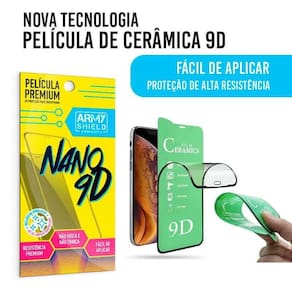 Película nano cerâmica 9d com kit instalação Película nano cerâmica 9d com bordas pretas cobre 100% da tela - película flexível não trinca com o uso e nem quebra - fácil aplicação - proteção avançada contra riscos e quedas - dura até 5x mais que as películas de vidro