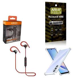 Fone de Ouvido Esportivo sem fio Magnético e com gancho para esportes KD-904Se você procura um fone para as atividades diárias, exercícios e movimento o fone sem fio KD-904 é a escolha idealContém Tons graves , profundos e complexos. Um verdadeiro som de qualidadeControle a reprodução de músicas e vídeos direto do botão de controle.Atenda e desligue chamadas, microfone HD in line embutido com controle de faixas.Com imã embutido que não atrapalha e não fica caindo da orelha, produto de design intra-auricular projetado para ser confortável ao ouvido.Isolamento de ruídos sem vazamento de som. O fone utiliza uma tecnologia aeronáutica de redução de ruído. Isola interferência de ruído externo. Mergulhe no mundo da músicaEspecificaçãoVersão: V5.0Tempo de espera: 200hTempo de conversação: 6hTempo de reprodução de música: 5hTempo de carregamento: 1hFrequências RF: 2,4GHzFaixa de frequência: 2.402G-2.480GTemperatura ambiente: -20/ +60CDistância de transmissão: 10mEspecificação do DriverUnidade do driver: 10mmSensibilidade: 90dB +-3dBImpedância: 32 +- 15%Resposta de frequência: 20-20000HzComprimento do cabo: 600mm-----Película de Vidro 3D Blindada - Armyshield Com Kit de InstalaçãoA película de vidro 3D para celular é um produto de alta qualidade que oferece proteção e estilo para o seu dispositivo móvel. Feita de vidro temperado de alta resistência, a película é projetada para se encaixar perfeitamente na tela do seu celular, proporcionando uma cobertura completa e proteção contra arranhões, rachaduras e outros danos. ------- Capinha Silicone Anti Impacto Anti Shock Transparente - ArmyshieldA capa de celular antishock é um produto de alta qualidade que oferece proteção e estilo para o seu dispositivo móvel. Feita de material de TPU poliuretano termoplástico de alta resistência, a capa é projetada para absorver impactos e proteger o seu celular contra quedas, arranhões e outros danos.Somos especialistas em Acessórios para celular há mais de 7 anos Antes de comprar verifique se o modelo do seu celular é o mesmo do produto comprado. Agradecemos a Preferência