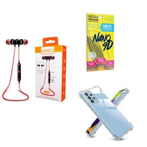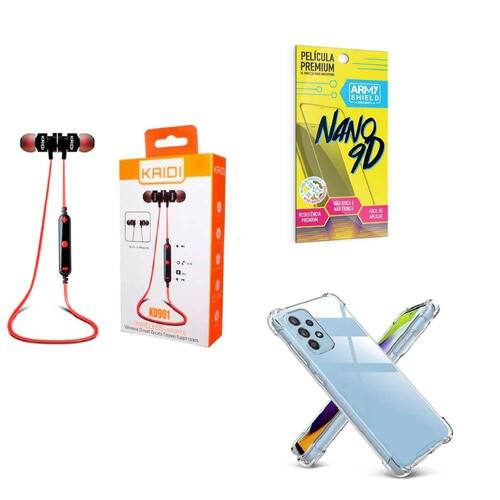 Kit Capinha Samsung Galaxy A54 5G AntiShock Transparente + Fone de Ouvido Sem fio KD901 + Película de Cerâmica 9D Frontal
