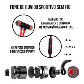 - Resistente a suor e de respingos podendo desfrutar de atividades ao ar livre - Tempo de reprodução de música: aprox 4 horas - Tempo de conversação: aprox 6 horas - Tempo de Stand By: aprox 200 horas - Função Bluetooth - Cancelamento de ruído - Com Microfone - Indicado para prática de esportes por sua alta resistência e qualidade - Distância de transmissão: até 10 m área aberta - Tempo de carregamento: aprox 1,5 hora - Tensão de Carregamento: DC 5V - Sensibilidade: 110dB + / - 3dB - Resposta de frequência: 20 - 22000Hz - Compativel com celulares Android, iPhone, leitor de mídia portátil, iPod, e qualquer dispositivo que reproduza via Bluetooth - Versão Bluetooth: V4.2 - Alto Falante Estéreo Dimensões aproximadas: 65 x 2,4 x 1,2 cm Peso da Embalagem: 100g