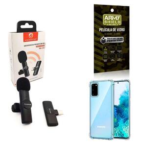 Capinha Samsung S20 + Microfone Lapela Sem Fio + Película 3D