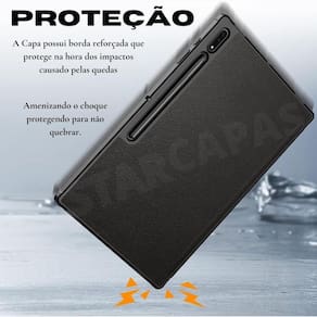 Capa em TPU com slot para caneta, textura de silicone na parte externa para aderência segura. Inclui película de vidro e kit de limpeza.Tipo