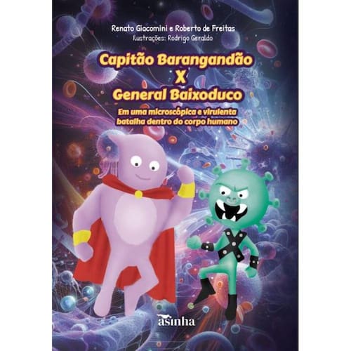 Quem narra esta história é uma personagem fictícia, um garoto que adoeceu e, em meio aos seus delírios febris, viveu intensamente a guerra que seu corpo travou contra este cruel, insidioso e mortal inimigo. Felizmente sobreviveu para nos contar toda essa sua desventura. O relato nos chama à atenção para as incontáveis guerras que estão acontecendo a todo instante, em todos os cantos, em todos os tempos, em todas as ocasiões. Esta é uma história atemporal e retrata um vírus não identificado, guloso como todos os vírus e determinado em se tornar pandêmico. Alertamos que qualquer semelhança não terá sido mera coincidência, pois, nestes últimos tempos, vimos o aparecimento de espécimes de vírus, até então desconhecidos e com alto potencial de gravidade. Mais do que nunca, percebemos a importância das crianças estarem bem informadas sobre as doenças, as suas formas de contágio e os meios de prevenção, enfocando as mudanças nas suas rotinas, os cuidados, a higiene, a necessidade do uso de máscaras e o isolamento social quando necessários, as vacinas, o cuidado com os outros. Nesta batalha, a importância da compreensão e participação infantil na guerra virulenta é vital para uma eficiente política global de combate às doenças, que, inevitavelmente, prometem estar presentes, cada vez mais, em nossas vidas. De um jeito lúdico, essa história se dispõe a trazer informações microbiológicas para possibilitar que elas, as crianças, tenham um pouco mais de intimidade com todo o vasto conhecimento que abrange o universo microscópico, nas suas boas e más interações com os humanos. A intenção é estarmos juntos aos pais, educadores e quem mais vier, para que possamos unir forças no front desta verdadeira batalha pela nossa sobrevivência. Vamos nessa?