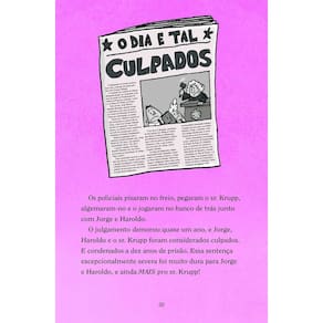 A nona aventura do Capitão Cueca promete muitas emoções com o retorno do maléfico professor Fraldinha Suja… ou melhor, o Caído Tilintar das Calças! Jorge e Haroldo estão atrás das grades por um crime que não cometeram… O pior é que quem os tira da prisão é o malvado Caído Tilintar das Calças, que os leva para uma nova viagem no tempo. Agora, os meninos estão de volta aos dias despreocupados do jardim de infância, quando a coisa mais assustadora que precisavam enfrentar não era um cientista mal-intencionado ou alienígenas prontos para destruir a Terra, mas um valentão da sexta série chamado Kipper Krupp, sobrinho do diretor, sr. Krupp. E, já que Jorge e Haroldo só inventaram o Capitão Cueca na quarta série, eles estão sozinhos nessa. Serão eles capazes de vencer usando a inteligência e não o poder do cuecão? Essa edição vem acompanhada por: ? “Vire o game”: páginas animadas pelo próprio leitor. ? Curiosidades sobre Dav Pilkey, o criador da série. ? Um passo a passo para desenhar o Jorge. Livro indicado para leitores a partir de 6 anos.
