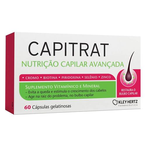 Capitrat nutrição capital avançada é um nutricosmético desenvolvido com base em um novo conceito para a manutenção da beleza e saúde dos cabelos. Com sua fórmula avançada, Capitrat age através da via nutricional para ativar, de dentro para fora, os mecanismos celulares das camadas mais profundas dos fios capilares.