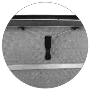 Estrutura e travas fabricadas em alumínio injetado com encaixe trek, sendo o material já conhecido pela excelente qualidade e resistência, com drebrum de lona em trama de 6x6 e tensores destacáveis para uma maior praticidade em seu manuseio, além de possuir puxador para facilitar a abertura da capota.