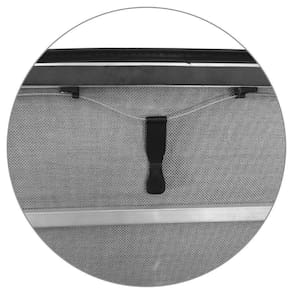 Estrutura e sistema de travas fabricadas em alumínio injetado com encaixe trek, acompanha varetas transversais, mantendo a lona esticada para que não haja acúmulo de água, acabamento debrum de lona em trama de 6x6 e tensores destacáveis para maior praticidade em seu manuseio, além de possuir puxador para facilitar a abertura da capota.