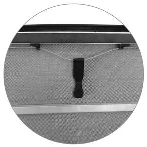 Estrutura e travas fabricadas em alumínio injetado com encaixe trek, sendo o material já conhecido pela excelente qualidade e resistência, com debrum de lona em trama de 6x6 e tensores destacáveis para uma maior praticidade em seu manuseio, além de possuir puxador para facilitar a abertura da capota.