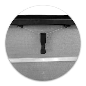 Estrutura e sistema de travas fabricadas em alumínio injetado com encaixe trek, acompanha varetas transversais, mantendo a lona esticada para que não haja acúmulo de água, acabamento debrum de lona em trama de 8x8 e tensores destacáveis para maior praticidade em seu manuseio, além de possuir puxador para facilitar a abertura da capota.