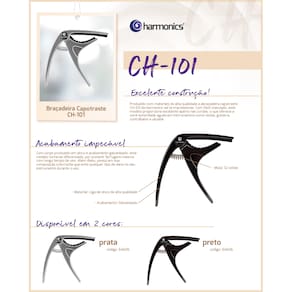 Em resumo, o Capotraste Harmonics CH-101BK combina funcionalidade, durabilidade e design sofisticado, sendo a escolha perfeita para músicos que valorizam precisão e praticidade em seus acessórios. Seja para facilitar a execução de músicas em diferentes tonalidades ou para explorar novas possibilidades sonoras, este capotraste é uma adição valiosa ao seu equipamento musical.
