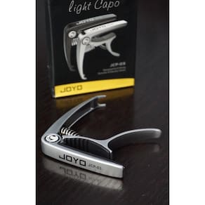 autorizada Joyo Brasil. Capotraste de metal da marca Joyo, modelo JCP-03 para Violão e Guitarra na cor prata. Características: - Alumínio - Se encaixa perfeitamente em todos os tipos de braços de violão ou guitarras. - De fácil e rápida aplicação - C ou G, Db ou Ab, D ou A, Eb ou Bb, E ou B, F Ean: 6972716326047