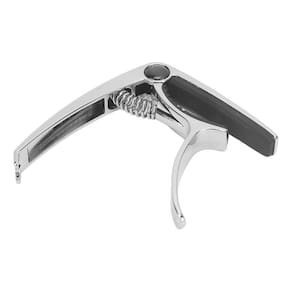 O acabamento prateado confere um toque de sofisticação ao capotraste, combinando perfeitamente com o visual do seu violão. Além disso, seu mecanismo de travamento assegura que o capotraste permaneça firmemente posicionado no braço do violão, proporcionando uma pressão adequada nas cordas e garantindo uma excelente sonoridade.