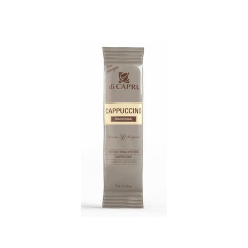 Cappuccino tradicional di capri sache 10g caixa com 100 unidades Mistura para preparo de cappuccino sabor tradicional Com tradição italiana e qualidade brasileira do café, os cappuccinos clássicos di capri se diferenciam no mercado pela qualidade e composição de seus ingredientes. Sua principal matéria prima é o leite em pó, fonte de proteína, rico em cálcio, fósforo, potássio e magnésio entre outras vitaminas e minerais, além do cacau e café considerados como superfoods, ou seja alimentos que em pequenas quantidades tem alto valor nutritivo. Ele na versão tradicional já vem adoçado, sendo ideal para quem quer praticidade e rapidez no preparo, pois basta adicionar água fervente para preparar um delicioso cappuccino, ou até mesmo na versão gelado bastando bater no mixer ou liquidificador. Ingredientes Leite em pó integral, açúcar, maltodextrina, café solúvel, cacau em pó, regulador de acidez bicarbonato de sódio, antiumectante fosfato tricálcico, aromatizante e espessante cmc. Não contém glúten. Alérgicos: contém leite. Ean: 7898939372618