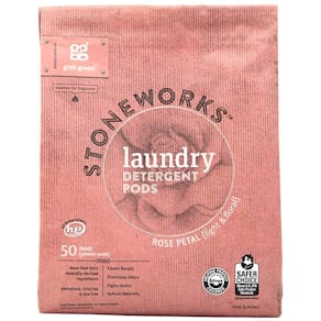 Grab Green Cápsulas de sabão em pó natural Stoneworks com pétala de rosa, 50 cargas