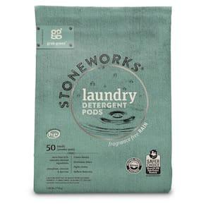 Grab Green Cápsulas de detergente para roupas Stoneworks, alimentadas por plantas derivadas naturalmente e cápsulas de pó à base de minerais, chuva sem fragrância, 50 unidades (pacote com 1) cargas - Certificado EPA Safer Choice