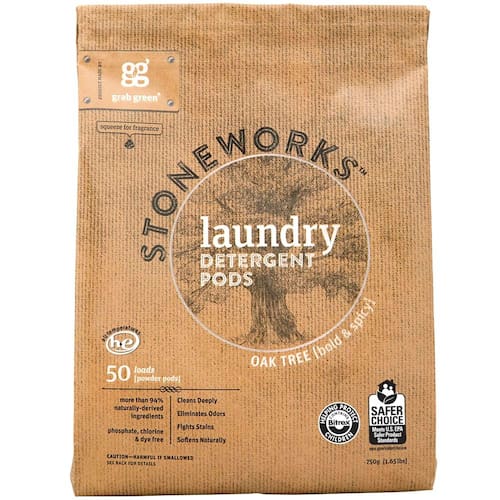 Grab Green Stoneworks Cápsulas de detergente natural para roupas em pó, carvalho, 50 cargas