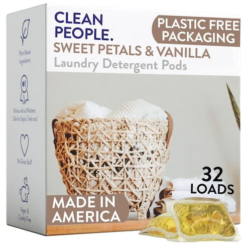 As cápsulas de detergente para roupas Clean People são todas as coisas boas em seu detergente favorito para roupas sem nenhuma das coisas ruins (sem fosfatos, parabenos, ftalatos, alvejante de cloro, corantes artificiais, petróleo, amônia).