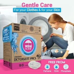 - Embalagem ecológica e reciclável: as cápsulas de sabão em pó WBM Home vêm em embalagens sustentáveis e sem plástico, reduzindo o impacto ambiental com materiais recicláveis.