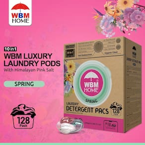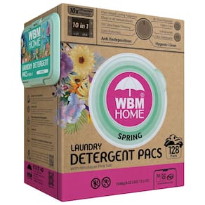 WBM Cápsulas de detergente para roupas domésticas, fragrância de primavera, 128 unidades - cápsulas concentradas HE com 10 x limpeza ultra potente e removedor de manchas 4D