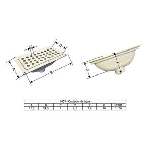 01 Captador de Água Calha em Alumínio e Grelha Marrom 25x13x8cm.