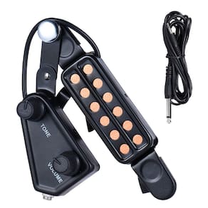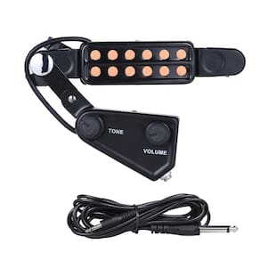 Captador para violão com transdutor magnético de 12 furos, pode capturar vibrações rapidamente. Projetado com um controlador de tom e volume para uma captação mais precisa. Fácil de instalar, coloque o captador no orifício de som e ajuste a peça de metal acolchoada. Não há necessidade de fazer furos e arranhões em seu violão.