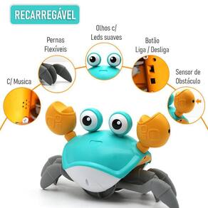 Caranguejo Fujão Brinquedo Musical Infantil Interativo Brinquedo caranguejo fujão interativo de indução, ao qual foge por sensor, com música e led.Perfeito para diversão dos bebês e da garotada Especificação:Matérial: Plástico + Componetes elétricosBateria: Bateria embutidaFonte de alimentação: USB Contém:1-brinquedo Robô Caranguejo 1- Cabo Carregador USB