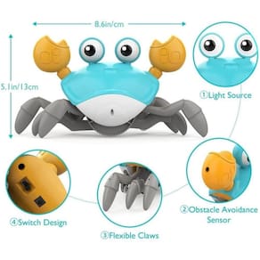 CARANGUEJO MUSICAL INTERATIVO SE MOVIMENTA COM LUZ O Caranguejo Fujão Interativo é a melhor opção para presentear seus pequenos.Ele contém sensores que ao aproximar de algo faz com que desvie fazendo com que a criança o siga e fique em constante movimento.Tenho certeza que seus filhos vão adorar !Divertido e bem humorado o Caranguejo Interativo corre pelo chão enquanto toca uma faixa de música animada. E é tão simples de usar - basta ligá-lo e soltá-lo! e ele rastejará alegremente de um lado para o outro sozinho, mas se encontrar um obstáculo, ele se virará automaticamente em uma direção diferente.Materiais seguros e de alta qualidade: Os brinquedos inteligentes são feitos de materiais ABS de alta qualidade seguros e duráveis, e as bordas são lisas sem rebarbas, você não precisa se preocupar em machucar seu bebê.Recarga: O caranguejo recarrega através de um cabo USB (Já incluso).Especificação:Tipo de item: Brinquedo de caranguejo de induçãoMaterial: plástico + componentes elétricosCor como mostradoQuantidade: 1 peçaBateria: Bateria embutidaFonte de alimentação: usbTamanho do produto: cerca de 23 * 14cmPeso de embalagem: cerca de 320gPacote:1* Brinquedo de Caranguejo indutor1*USB Marca: OMG TOYS
