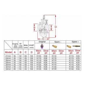 O pacote inclui: 1 x carburador, 1 x filtro de ar com malha, 1 x adaptador, 3 x power Jet Nota: La cantidad de chorro de potencia en la caja de plástico es de 3 piezas como se mostra en la imagen, no 4. Tamanho: 21 mm: motor de 50cc a 100cc 24 mm: motor de 50cc a 100cc 26 mm: motor de 75cc a 125cc 28 mm: motor de 75cc a 125cc 30 mm: motor de 100cc a 150cc 32 mm: 125cc a 200cc motor 34 mm: 125cc o motor de 250cc Nota: La cantidad de chorro de potencia en la caja de plástico es de 3 piezas como se muestra en la imagen, no 4. 1) cabe en motores de 4 T 50cc a 300cc (motores de cilindro 1/2/4 son universales) 2) usted puede comprar un carbur50cc más alto ou más bajo que su autêntico para ahorrar gas y viajar más rápido. 3) usted puede elegir el tamaño y el nombre del cuerpo que usted necesita. 4) substituye carburador existente, sólo tiene que sustituir y montar de nuevo. Dê à sua máquina a nova potência e o par que realmente merece, e tenha mais diversão com o poder na ponta dos dedos.