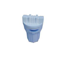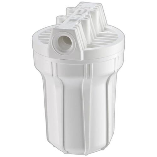 Carcaça branca para filtros com altura de 5 polegadas, conexões de 1/2 polegada, resistente e durável, fácil de limpar e manter.Bica móvel