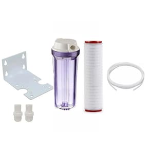 Carcaça transparente de 10 polegadas com refil plissado absoluto de 0,22 micra para filtração microbiológica. Inclui suporte, conectores e mangueira.Tipo