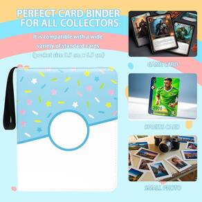Grande capacidade -- Este encadernador de cartão de rosca tem 50 capas removíveis. Cada bolso tem 3,6 x 2,6 polegadas, adequado para cartões colecionáveis de tamanho padrão. - Capacidade de 900 bolsos -- Este fichário de cartão de rosca tem 3 argolas e 50 capas removíveis. - Tamanho padrão -- Cada bolso mede 3,6 x 2,6 polegadas, adequado para cartões colecionáveis de tamanho padrão. (O cartão colecionável não está incluído) - Alta qualidade - Nosso encadernador de cartão de donut é feito de materiais de couro PU premium, que são duráveis, impermeáveis e resistentes a óleo, muito fáceis de limpar. O design de 3 anéis de fivela permite aumentar ou diminuir as páginas da manga. - Ampla aplicação - Nosso encadernador de cartas de jogo serve para todos os cartões colecionáveis de tamanho padrão, como cartas colecionáveis, cartas esportivas, cartas de ídolos, etc. - Ótimo presente -- O fichário de cartão de donut é um presente perfeito para sua pessoa amada. É perfeito para presente de aniversário, presente de Natal, presente de Ação de Graças, presente de recompensa, etc.