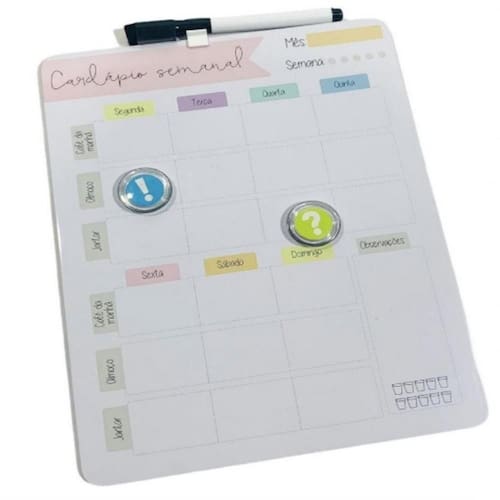 Transforme a maneira como você planeja suas refeições e traga mais organização para sua cozinha com a Lousa Magnética Cardápio Semanal. Adquira a sua hoje e experimente a simplicidade e a eficiência de uma rotina alimentar bem organizada Marca: Yeet