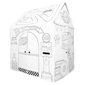 Easy Playhouse Garage — Arte e artesanato infantis para se divertir em ambientes internos e externos, pinte os itens favoritos da garagem — Decore e personalize um forte de papelão, 32" x 26,5" x 40,5" a partir de 3 anos — Personalize sua garagem — Seu filho pode colorir e personalizar seu centro automotivo e garagem, dando vida às ferramentas e acessórios favoritos — Inclua iluminação pública (pare, vá, cuidado), martelo (Thump Thump), pneus (Vroom Quarto), e não se esqueça de abastecer o carro na bomba de gasolina. Use adesivos, marcadores, giz de cera ou tinta (não incluída) nesta tela divertida para dar vida ao forte - Explore e imagine a vida na garagem - Esta garagem cria o forte, a casa e a barraca perfeitos para fingir, além de funcionar como um ótimo lugar para ler histórias e ainda mais diversão de aventura. Faça um pit stop, troque um pneu e faça uma corrida pela pista. Conserte qualquer coisa com todas as ferramentas necessárias, dramatizando com este centro automático de papelão - Não se esqueça de comemorar na Victory Lane após a corrida ou descansar e tirar uma soneca lá dentro depois de todo o trabalho árduo - Janelas, portas e entrega de correio - Ding Ding, insira a correspondência nas duas caixas de correio da garagem pelo lado de fora ou também empurre a correspondência de dentro de casa - É sempre divertido dar e receber cartas, possui 2 portas dobráveis e duas janelas dobráveis para entrar E vá como os mecânicos para cuidar dos veículos, além de acenar “Oi” para todos os nossos amigos que passarem - Country Of Origem: China