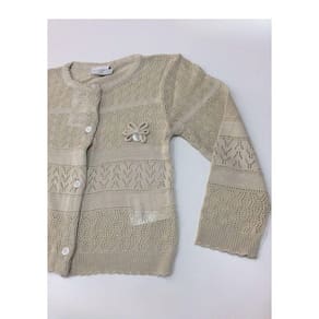 Cardigan Tricot Feminino Infantil Noruega Bege/ Branco - Bege - 10