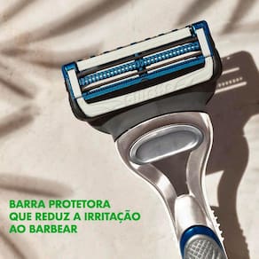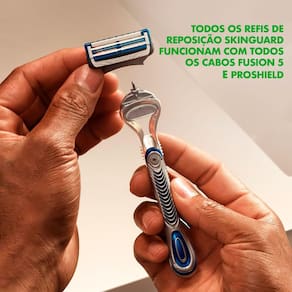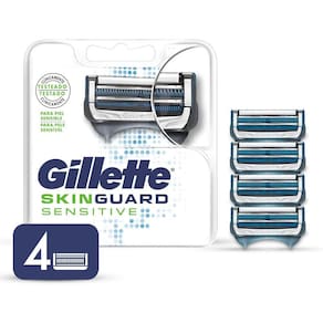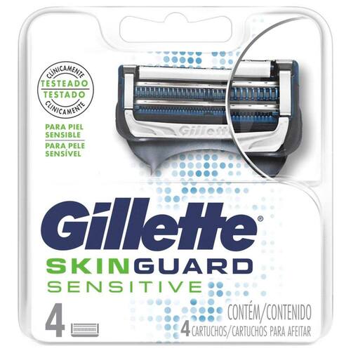 Os refis de lâminas Gillette Skinguard Sensitive são os primeiros cartuchos de barbear com uma exclusiva barra protetora SkinGuard entre as lâminas para depilar e proteger a pele. O SkinGuard reduz o contato da lâmina com a pele.