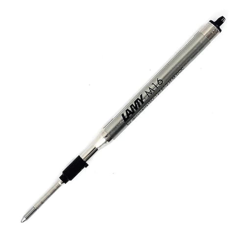 Carga para caneta esferográfica LAMY M16, na cor preta, com escrita média. - Compatível com a grande maioria das esferográficas LAMY, exceto modelos multifunção esferográfica e lapiseira no mesmo corpo e modelos de bolso Pico e Scribble . - Produto oriundo da Alemanha Ean: 8749288236603