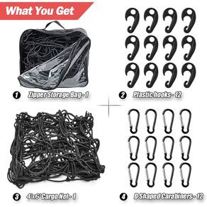 ZUOZE Rede de carga super resistente de 1,22 m x 1,82 m, 12 mosquetões de metal + 12 ganchos, rede elástica pequena de malha de 10,16 cm x 10,16 cm compatível com Ford, Dodge, Chevy, Toyota, Nissan Nossa rede universal para bagageiro tem tiras elásticas de 5 mm e tamanho de 1,2 m x 1,8 m (estica até 2,4 m x 3,6 m). Esse tamanho é uma solução perfeita para grandes cargas de camião para acampar, viajar, mover ou carregar qualquer outra coisa em sua picape ou trailer. ?Qualidade premium? Nossas redes elásticas são feitas com material elástico de látex de qualidade premium. O elástico de látex se estica extra longe e mantém sua forma quando não esticado. O material elástico é coberto por uma bainha de nylon durável e resistente a UV para preservar a aparência e a longevidade da rede. ?Design de malha de 10 x 10 cm? O quadrado de malha de 10 x 10 cm é projetado para manter o tamanho pequeno seguro e fornecer mais força e proteção quando esticado sobre itens de carga maiores, como máquina de lavar, geladeira e outras malas grandes. ?AUXILIAR COMPLETO? 12 clipes de mosquetão ajustáveis de liga de alumínio e 12 ganchos ABS oferecem conveniência para prender na cama do seu caminhão. E eles podem ajustar o aperto da rede movendo os clipes de 1 quadrado de malha para outro. Fácil de instalar. A rede de carga é fácil de instalar. E porque sabemos que a coisa mais perturbadora é uma rede emaranhada e ganchos espalhados por todos os pisos ou porta-malas, por isso fornecemos uma bolsa para armazenamento. Conteúdo da embalagem: 1 rede de carga de núcleo de látex 1,2 m x 1,8 m (estica até 2,4 m x 3,6 m) 1 bolsa de armazenamento com zíper. 12 mosquetões de metal. 12 ganchos de ABS. - Material de núcleo de látex atualizado: nossa rede resistente é feita com um núcleo de látex extra grosso de 5 mm, mais elástico e durável do que a borracha comum. Pode esticar até 2,4 m x 3,7 m e mantém sua forma quando não esticada - Malha apertada de 10 cm: possui pequenas malhas apertadas de 10 x 10 cm. Esta malha mais justa segura melhor a carga e ajuda a evitar "quedas". - 12 ganchos ABS + 12 mosquetões de alumínio: os ganchos de plástico da versão antiga quebram muito facilmente. Nossos ganchos ABS de espessura dupla (espessura: 6 mm) podem suportar cargas grandes. 12 mosquetões de metal adicionais para máxima versatilidade para caber nos pontos de fixação existentes de carro e bagagem - Vários usos: esta rede de carga se estende sobre suas lonas, equipamentos esportivos, mantimentos, caminhões, trailers, picapes, barcos ou qualquer carga grande para organizar e manter no lugar durante a viagem - Garantia: Garantia de devolução do dinheiro em 30 dias por qualquer motivo, garantia de 12 meses para problemas relacionados à qualidade. Se houver algum problema, basta entrar em contato conosco, nossa equipe de atendimento ao cliente o mais rápido possível. Gostaríamos de enviar uma substituição ou enviar o reembolso até que você esteja satisfeito