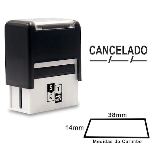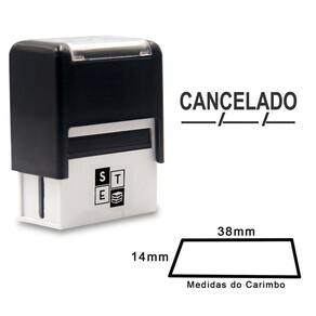 01 carimbo automático set Texto do carimbo - cancelado com data Marca: set Auto - entintado: sim Dimensões: 38mm alt. X 14mm larg. Cor do tinteiro: preta Cor da capa exterior: preto Marca: Set Papelaria