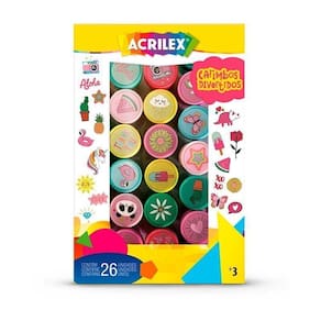 os carimbos divertidos da acrilex são perfeitos para desenvolver sua criatividade e deixar suas anotações mais coloridas com diversos modelos e cores diferentes a cor do carimbo corresponde com a cor da embalagem. Tema: fun aloha