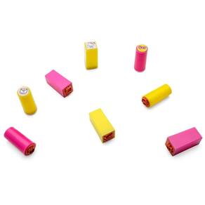 Com o carimbo a criançaa tem sua coordenação motora estimulada, segurando com a mãozinha a peça e apertando no papel, sem contar que ajuda tambem a soltar a imaginação.