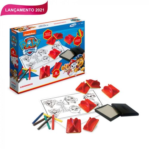 Os carimbos Patrulha Canina com 6 cenas diferentes, carimbos de cabo plástico e borracha atóxica.