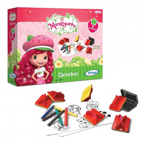 Carimbar é muito divertido, ainda mais em boa companhia. O conjunto de carimbos moranguinho é um produto educativo com 6 carimbos diferentes, de cabo plástico e borracha atóxica. Acompanha bloco de papel e giz de cera para colorir as imagens carimbadas durante a brincadeira. Recomendado para crianças acima dos 4 anos de idade. O carimbo contribui no desenvolvimento percepção visual, coordenação motora e estimulo a criatividade.