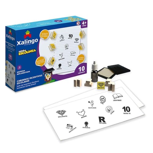 Brincar com carimbos nunca ficou tão divertido! Com os Carimbos Escolares Minha EscolinhA, a brincadeira está garantida! Conta 10 diferentes carimbos com palavras de incentivos escolares, de cabo madeira e borracha atóxica. Acompanha 1 almofada para carimbo, 1 frasco de tinta atóxica e 1 bloco de papel. Desenvolve a percepção visual, coordenação motora e estímulo a criatividade através dos divertidos carimbos brincando de escola como pequenos professores! É pura diversão! Indicado para crianças a partir de 4 anos.