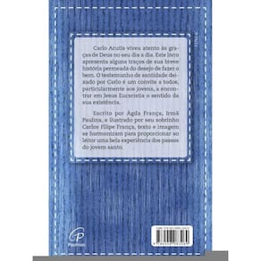 Carlo Acutis viveu atento às graças de Deus no seu dia a dia. Este livro apresenta alguns traços de sua breve história permeada do desejo de fazer o bem. O testemunho de santidade deixado por Carlo é um convite a todos, particularmente aos jovens, a encontrar em Jesus Eucaristia o sentido da sua existência. Escrito por Ágda França, Irmã Paulina, e ilustrado por seu sobrinho Carlos Filipe França, texto e imagem se harmonizam para proporcionar ao leitor uma bela experiência dos passos do jovem santo.