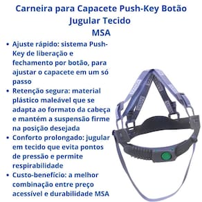 Adquira agora mesmo a Carneira para Capacete Push-Key MSA e experimente o ajuste mais rápido do mercado com total conforto e proteção! Marca: Não Informado