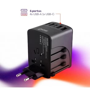 O Único Carregador que Você Precisa para Viajar o Mundo: O Adaptador de Tomada Universal da Geonav é o companheiro de viagem perfeito. Compatível com os padrões de mais de 150 países (EUA, Europa, Reino Unido, Austrália), ele garante que você possa carregar seus dispositivos em qualquer lugar. 4 Portas USB e 1 Porta USB-C: Carregue até 5 dispositivos simultaneamente! Possui 4 portas USB-A e 1 porta USB-C, ideal para smartphones, tablets, notebooks e outros aparelhos. Design Compacto e Seguro: Com um sistema de pinos retráteis, é super compacto e fácil de transportar. Possui fusível de segurança para proteger seus aparelhos. Universal e Prático: A solução definitiva para nunca mais se preocupar com o padrão de tomada do seu destino. Palavras-chave: Adaptador de Tomada, Universal, Viagem, Geonav, 4 USB, USB-C, Carregador, Internacional.